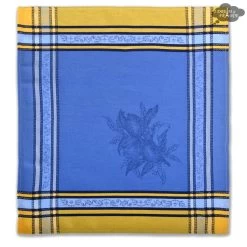 62″ Square Citrus Yellow & Blue French Jacquard Tablecloth By L’Ensoleillade