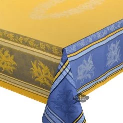 62×98″ Rectangular Citrus Yellow & Blue Blue French Jacquard Tablecloth By L’Ensoleillade