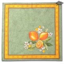 70″ Square Lemons Green Acrylic-Coated Cotton Tablecloth By Tissus Toselli