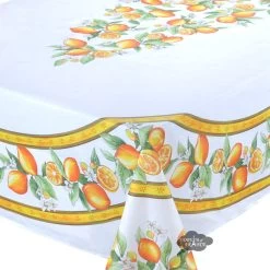 60×96″ Rectangular Lemons White Acrylic-Coated Cotton French Tablecloth By Tissus Toselli