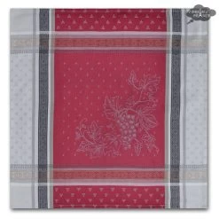 62″ Square Winery Red & Gray French Jacquard Tablecloth By Tissus Toselli