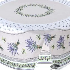 70″ Round Lauris Acrylic-Coated Cotton Tablecloth By Tissus Toselli