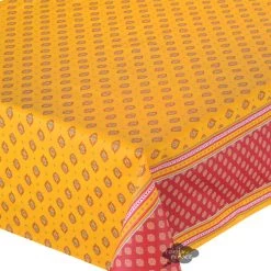 60×96″ Sormiou Yellow & Red Double-Border Acrylic-Coated Cotton Tablecloth By Label France