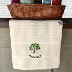 58″ Square Fayence Cream Acrylic-Coated Cotton French Tablecloth By Le Cluny