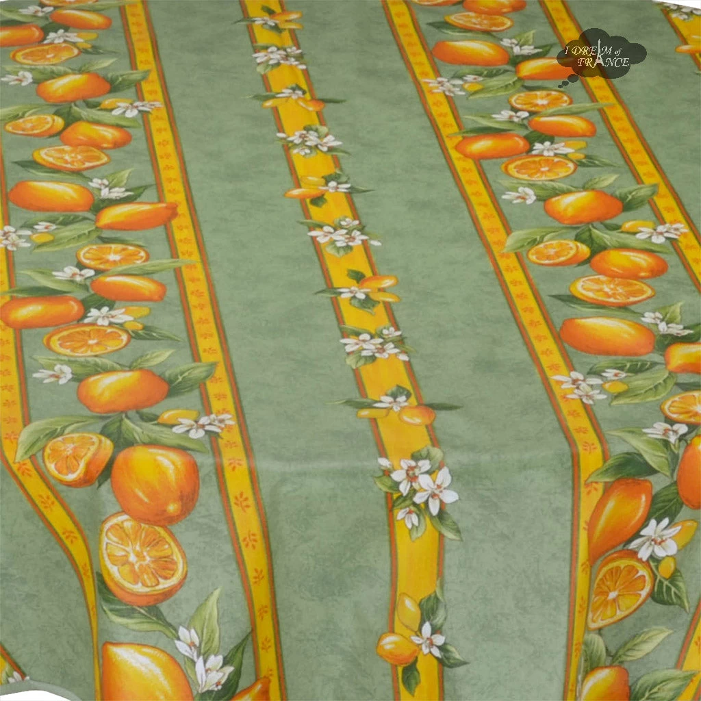 From Tissus Toselli, this coatedtablecloth features bright and cheerfullemonson agreen background. It is 100% cotton and is available with or without stain resistant coating.With the optional acrylic coating,spills will not go through, protecting your table. Cleanup is as easy as wiping it with a sponge. UV resistant, they resist fadingand are perfect inside or outside.