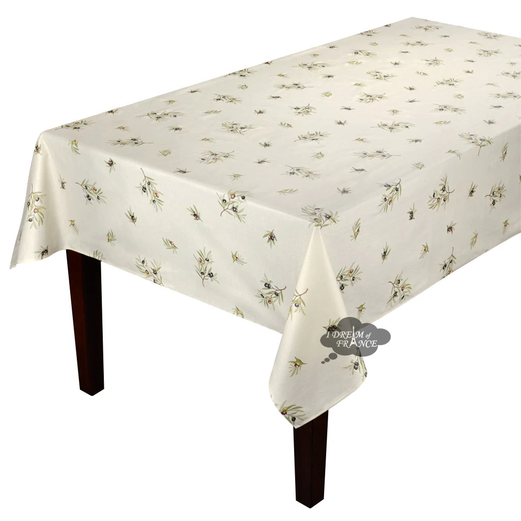 60×138″ Rect Clos Des Oliviers Cream All-Over Acrylic-Coated Cotton Tablecloth By L’Ensoleillade