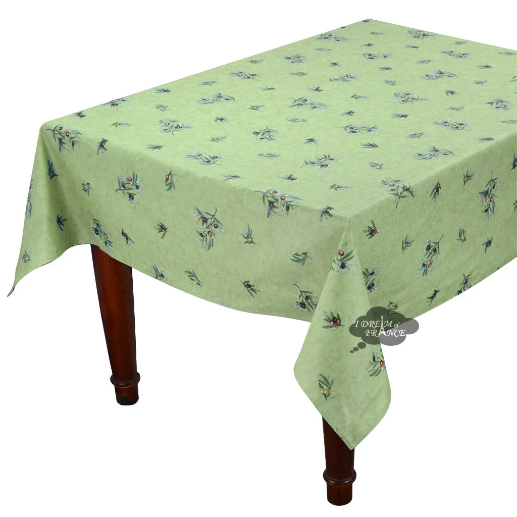 60×138″ Rect Clos Des Oliviers Green All-Over Acrylic-Coated Cotton Tablecloth By L’Ensoleillade