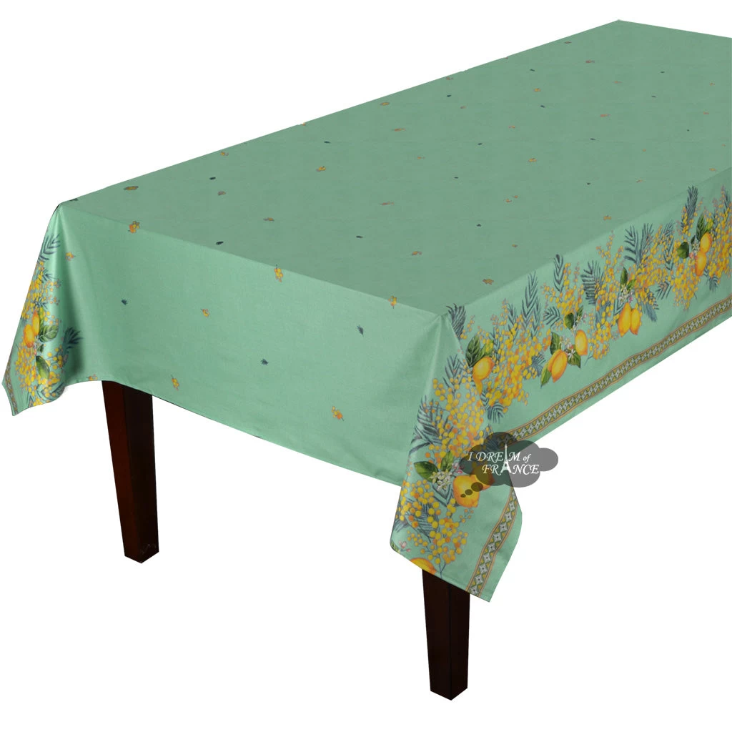 60×138″ Rectangular Lemon & Mimosa Green All-Over Acrylic-Coated Cotton Tablecloth By Label France