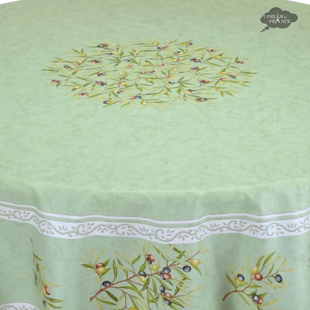 70″ Round Clos Des Oliviers Green French Tablecloths By Label France