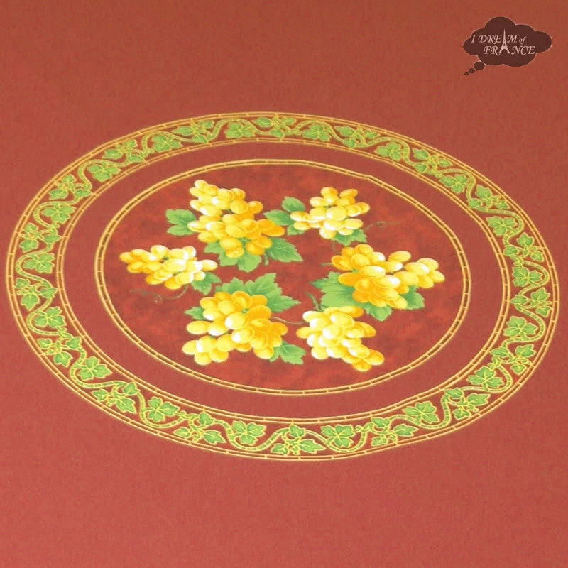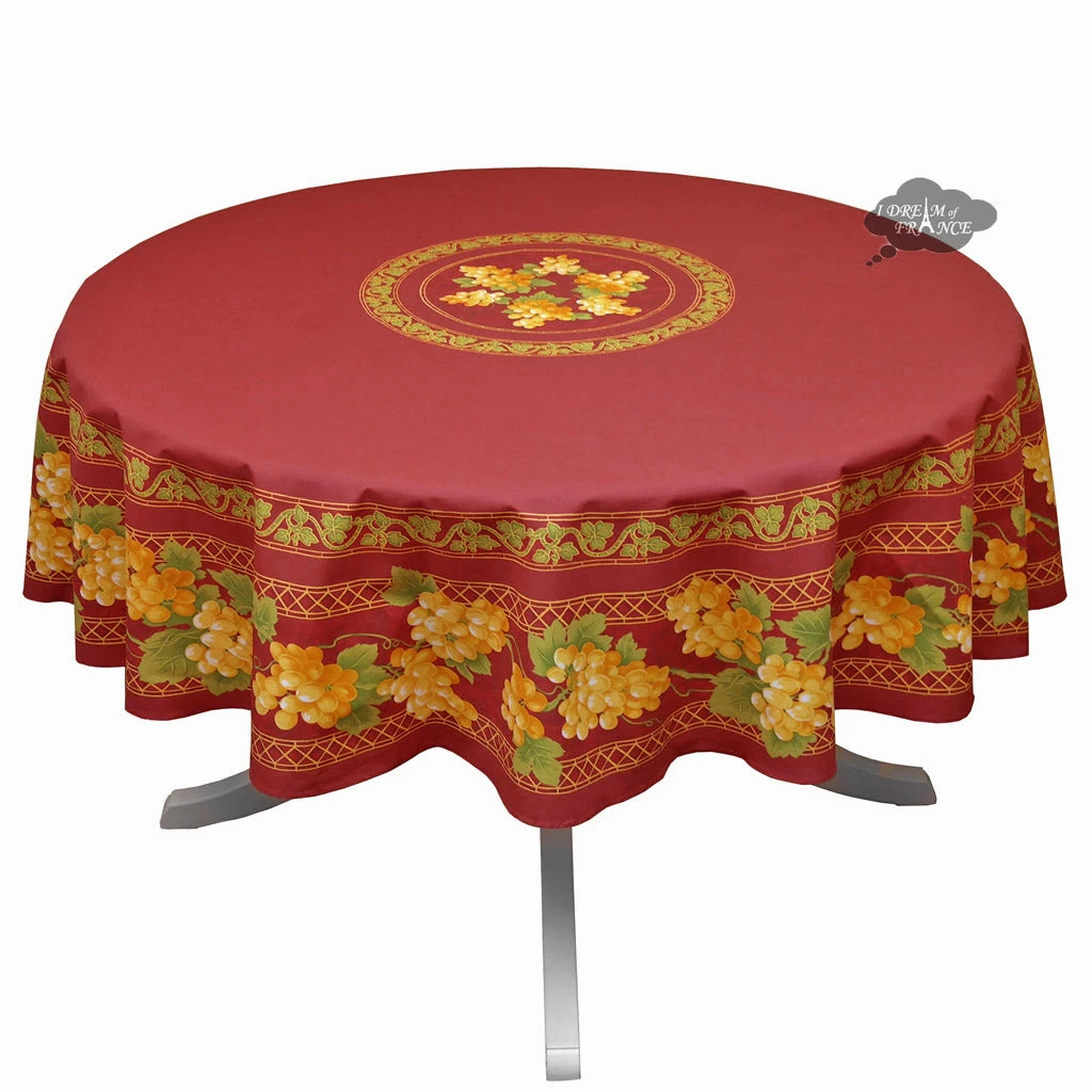 70″ Round Grapes Red Acrylic-Coated Cotton Provence Tablecloth By Le Cluny
