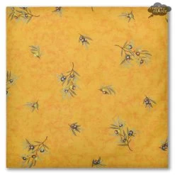 This tablecloth measures 70″ in diameter, it will fit most round tables up to about 52 inches in diameter. Made in France. It can be ordered with an umbrella hole, please seeoptions below.
