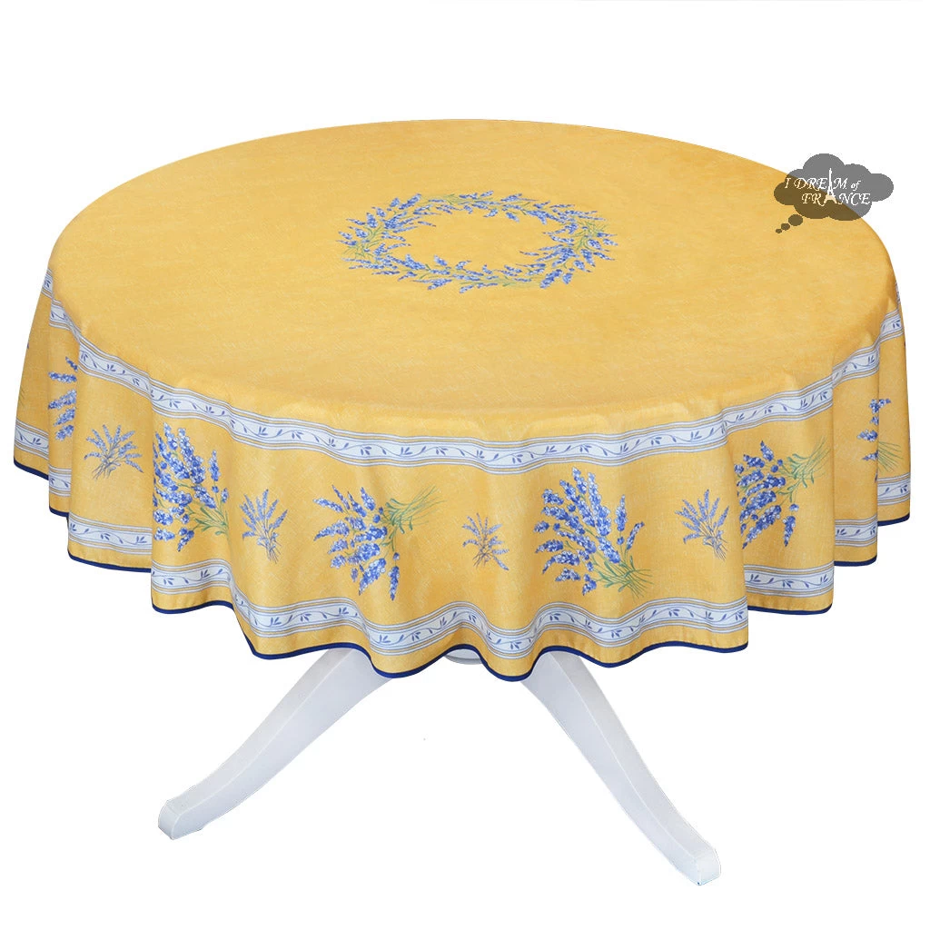 70″ Round Valensole Yellow Acrylic-Coated Cotton Tablecloth By Label France