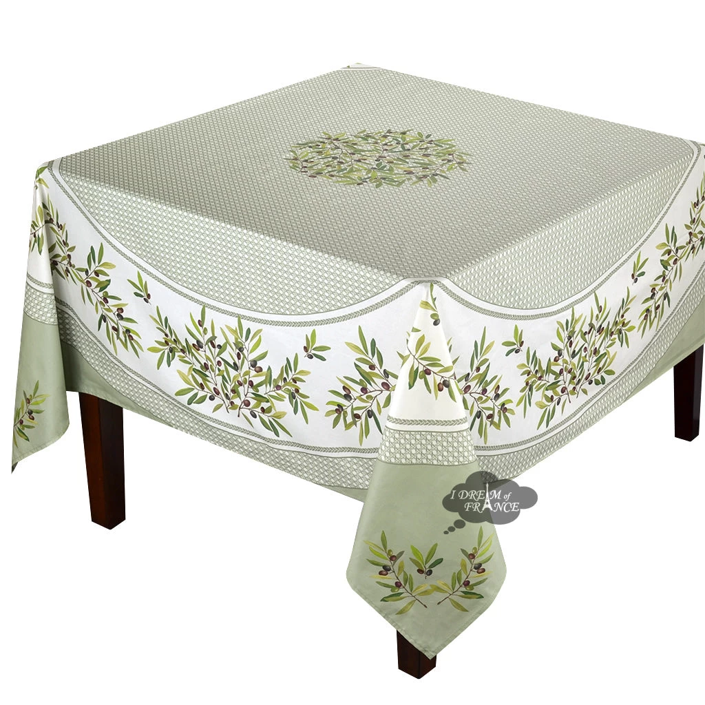 70″ Square Nyons Green Acrylic-Coated Cotton Tablecloth By Tissus Toselli