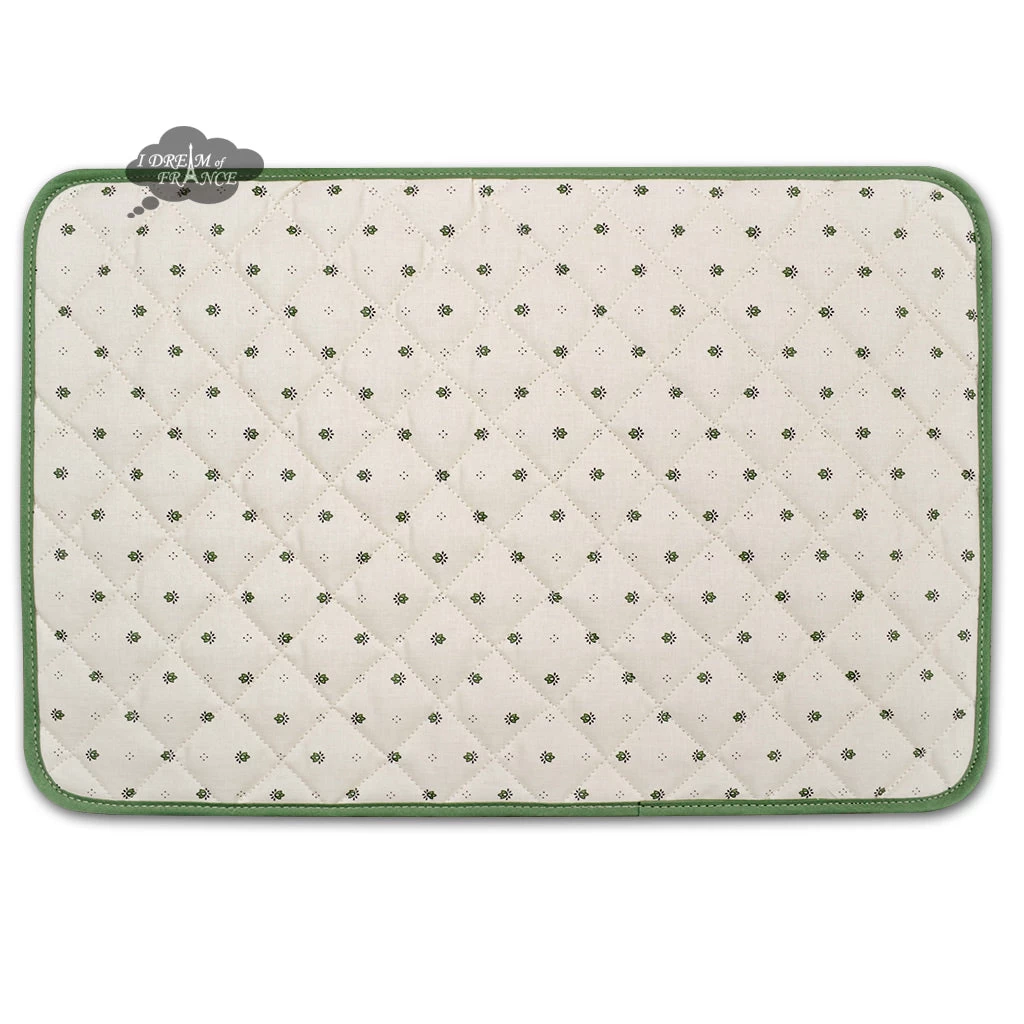 Calisson Cream & Green Acrylic-Coated Cotton Quilted Placemats By Tissus Toselli