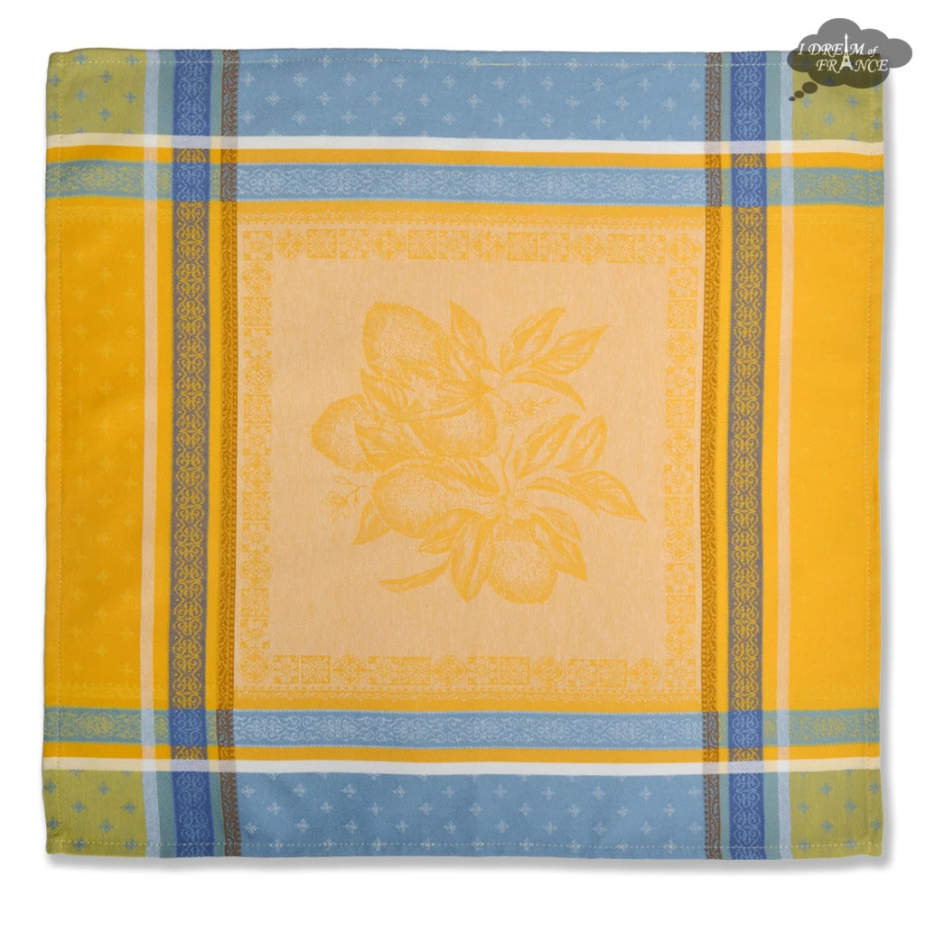 Cedrat Yellow & Blue French Cotton Jacquard Napkin By Tissus Toselli