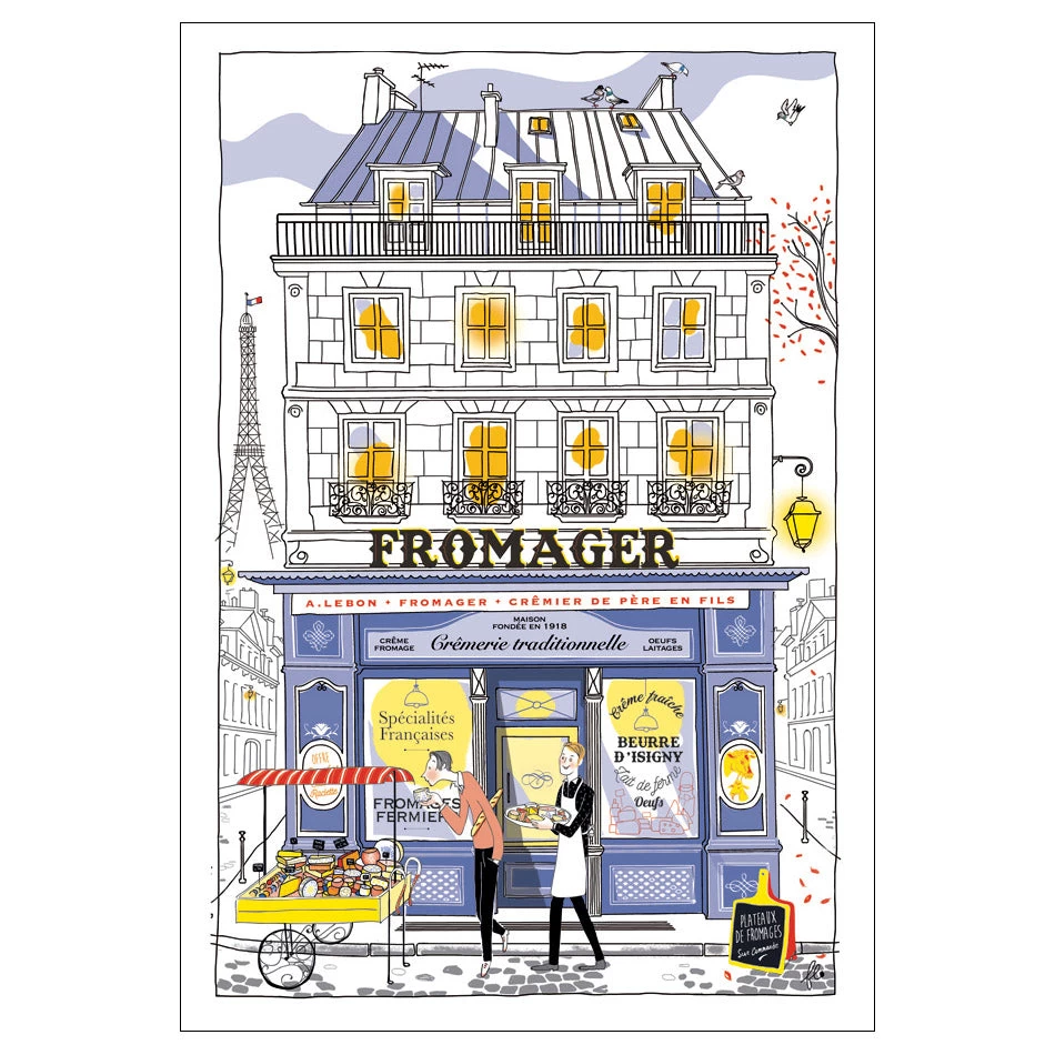 Take a trip to a French cheese shop (or “fromager” in French) with this beautiful tea towel. Just like every Torchons et Bouchons towel, this towel is printed on heavy 100% cotton fabric using food safe dyes.