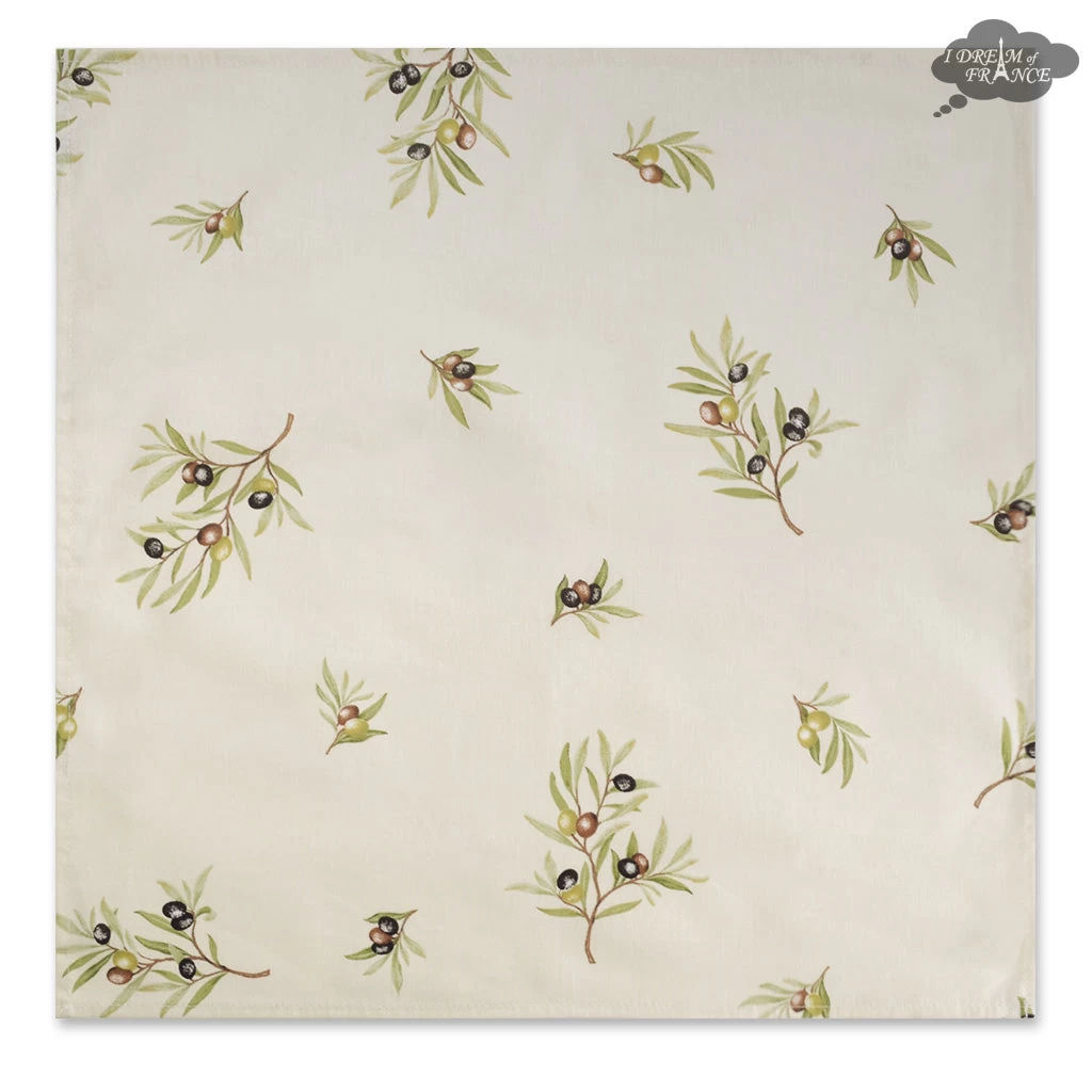 These beautiful cotton napkins will complement our Clos des Oliviers creamline or just look great on their own. It features olives brancheson a light cream background in an all-over pattern. They are 100% cotton.Napkins are NOT coated. These napkins measure 18″ across. Sold individually. Made in France. Can be labeled as “Label France” or “L’ensoleillade”.