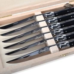 Laguiole Jean Dubost DeLuxe Table Knives Set Of 6 – Black Handles