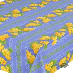 58″ Square Grapes Blue Acrylic-Coated Cotton Provence Tablecloth By Le Cluny