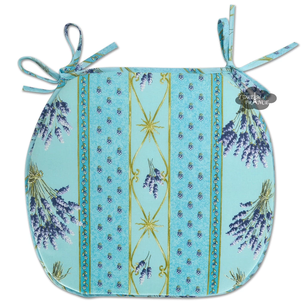 Lavender Blue Acrylic-Coated Cotton Cotton French Style Chair Pad By Le Cluny
