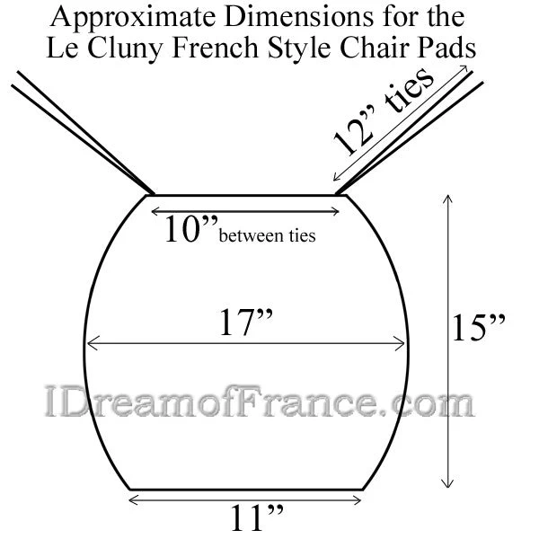 From Le Cluny French Country Collection, these coated chair pads will coordinate with our Lavender redtablecloth or placemats. They are reversible and 100% cotton coated with acrylic to make them stain resistant. Their shape is perfect for French country chairs with a narrow back. Please see the diagram with the approximate dimensions to make sure they will fit your chairs.