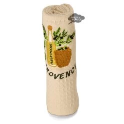 Direct from Provence, this beautiful towel will be a great addition to your kitchen. Made of 100% cotton, this Coton Blanc towel will handle the toughest jobs thanks to its waffle-weave texture. This creamcolor towel is embroidered with olive branches, a jar filled with olives, a bottle of olive oil,and the word Provence. It comes rolled as on the picture, perfect for offering as a gift.