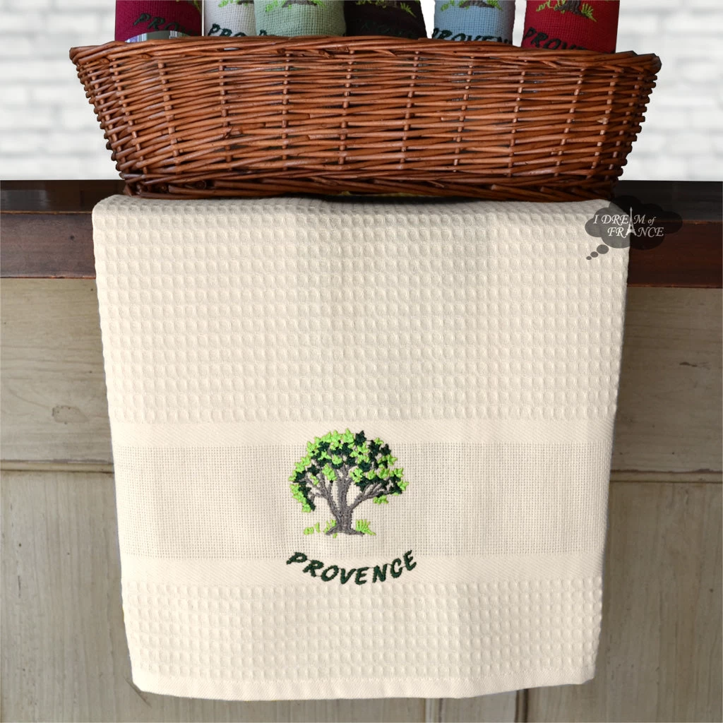 Provence Olive Tree Cream Waffle-Weave Kitchen Towel By Coton Blanc
