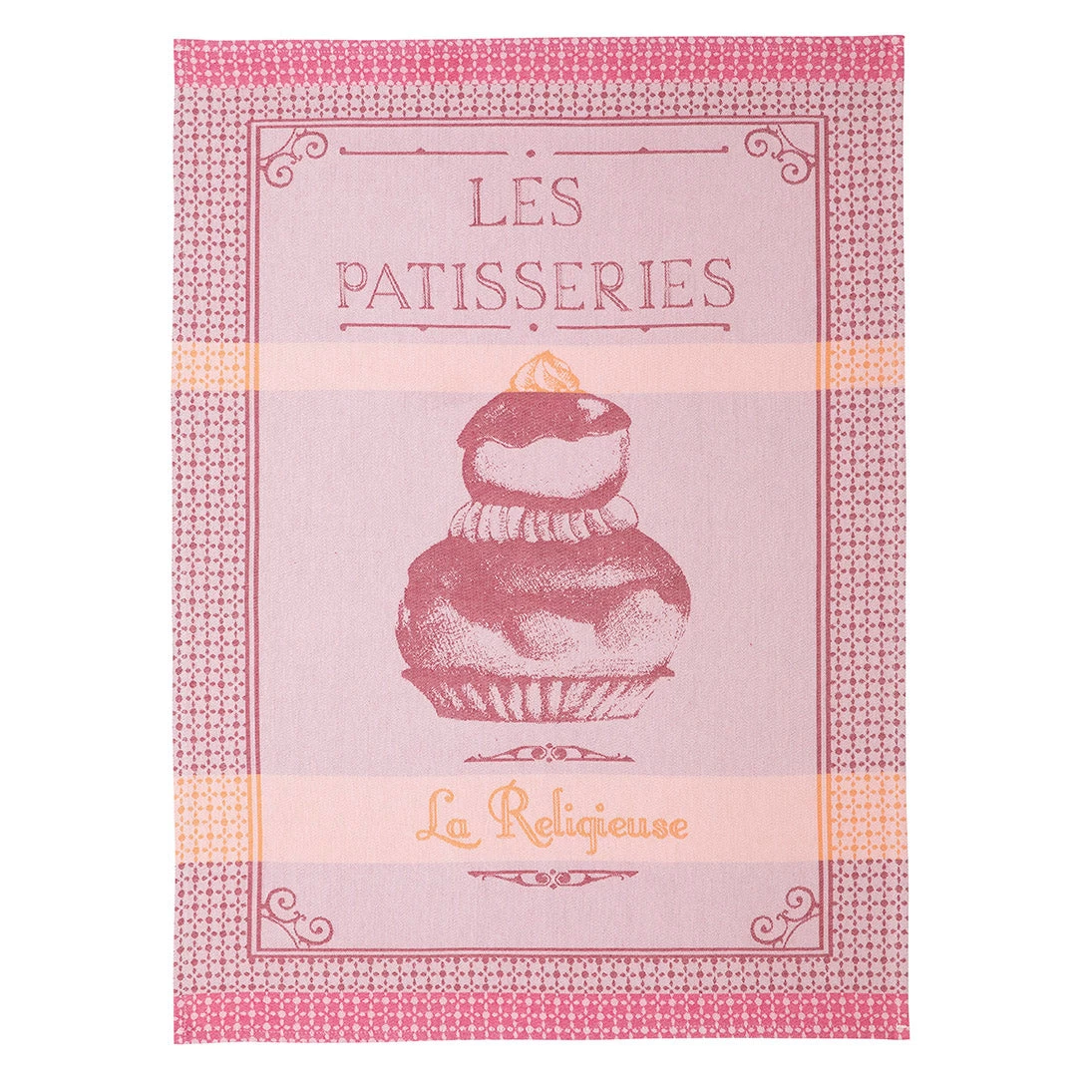 The Religieuse (Nun)jacquard dish towel from Coucke will brighten your kitchen and your day.This pink and orangetowel measures 20″ x 30″ and features a detailed illustration woven into the towel of a Religieuse, the delicious French pastry.Beautiful and soft, this towel will serve you well.
