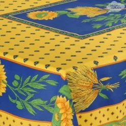 Tournesol Blue/Yellow French Provencal Stain Resistant Polyester Tablecloth – 59×94″