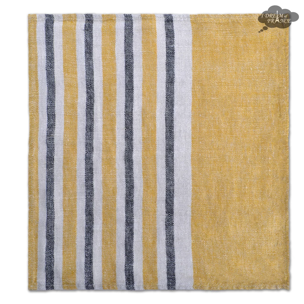This beautiful natural colorHarmony Zonzalinen napkin is 100% European linen, smoothed and dyed for appearance and durability.The colors are golden yellow, gray and black.It has a rustic look that is at home in any dcor, from traditional to modern. It is engineeredto reduce wrinkling after washing.